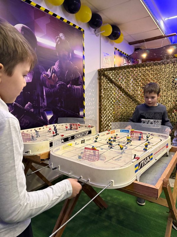 Преимущества: Большая игровая зона, классная банкетная комната! Для тех кто устал бегать, могут поиграть в настольный хоккей, настольный футбол, поиграть в приставку!